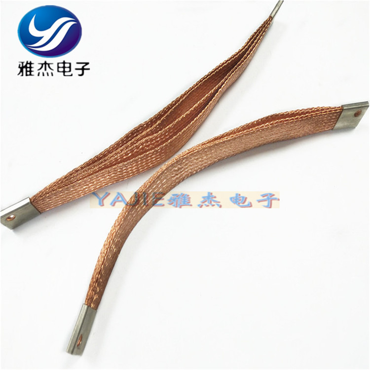 东莞市雅杰电子材料有限公司产品性能:采用铜绞线、铜编织线作为导体,两端采用铜管,铜管表面镀锡处理,接头尺寸按客户要求生产,再通过特殊处理,做成软连接、软接地。导电率高、抗疲劳能力强。