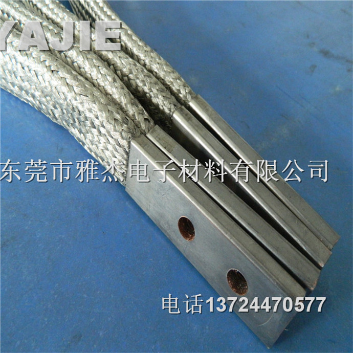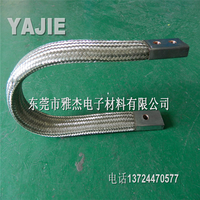 铜编织带软连接产品性能:用裸铜线、铜编织线,作为导体,两端采用铜端子,接头尺寸按客户要求生产,用冷压方法压制而成。可根据客户要求镀锡镀银。再通过特殊处理,做成高强度大电流软连接。导电率高、抗疲劳能力强。表面平整,光亮,接触面好,导电性能优越.适用性强,柔软度佳,安装方便,易散热,耐弯曲,铜编织带是用无氧铜丝编织,线经0.10mm,0.12mm,0.15mm单丝,根据客户要求,柔软度,通电强度等特制而成.广泛使用于高低压电器,真空电器,高低压开关柜,电焊机,汽车,电力机车,电炉,矿用防爆电器,发电机组,碳刷导线的软连接。